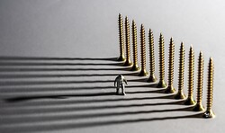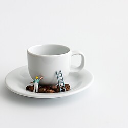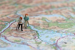 Moving on to the main topic of the evening, Mark explained that Small World set ups were achieved most easily using a camera on a tripod, focussed manually on a line of subjects. The scenes included in his selection of images were tiny engineers working on dismantled technical instruments and computer parts, and other little people in a land of broccoli trees and coffee bean rocks or a city of mobile phone skyscrapers. Miniature climbers climbed cheese graters and walkers navigated on actual maps while skiers skied down slopes of loo paper. Special lighting, a fog machine, flash gun and reflectors were sometimes useful for extra effects.