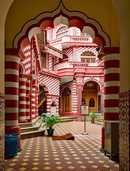 a lighthouse until 1952 and the red and white bricked Jami-Ul-Alfar Mosque, commonly known as the Red