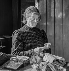 with Preparing to Sew, an interesting re-enactment portrait which was admired for its natural with subdued lighting. In