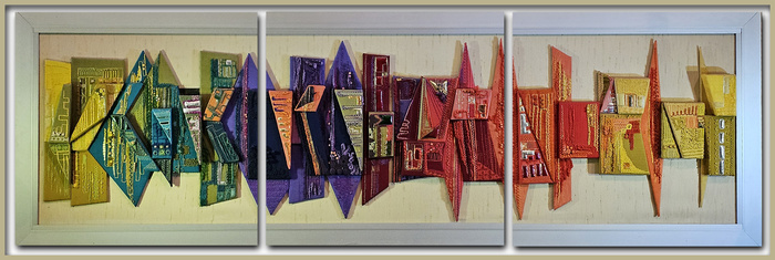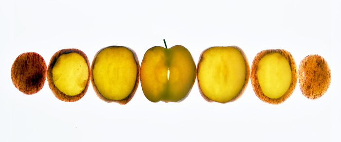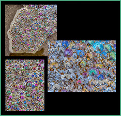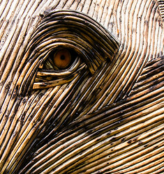 Then on to umbrellas at Halifax Market, Ice patterns on windows, ink blots, an abandoned boat, an elephant eye, an alien armoured statue made from metal components, implanted footprints and urban graffiti. A diptych of open and closed eyes was followed by the Undercroft at Fountains Abbey. Also included was an artistically peeled orange, apple slices taken on a light box, Olive reflections, ice crystals on an apple and spent ink cartridges. An owl in flight contrasted with reflections of aerated bubbles of sea water and an orange-coloured rope and fish box.