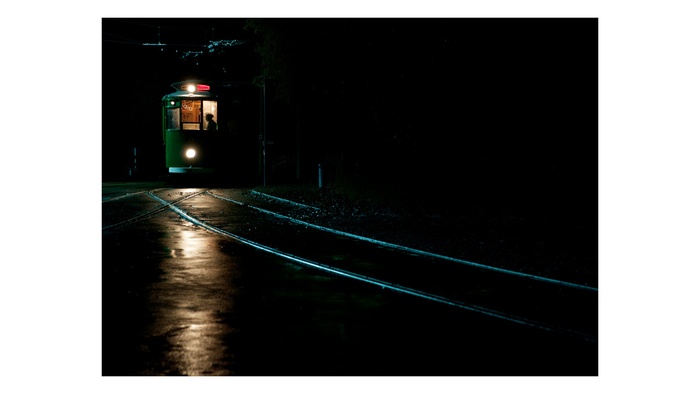 blue sky, solitary bus shelters glowing at night and very minimalist scaffold poles with a ladder were also included