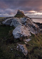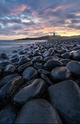 Dunstanburgh Castle from Death Rocks and Bamburgh Lighthouse.