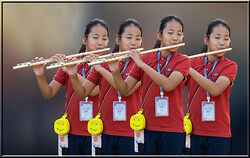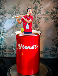 The set images were a young flautist, a reenacted seamstress, a Swaledale landscape, the Canary Wharf Crossrail Rainbow Wrap, kitchen utensils, Worcester Cathedral Chapter House, St Pauls’ dome, a view from Lindisfarne and a knitting still life.